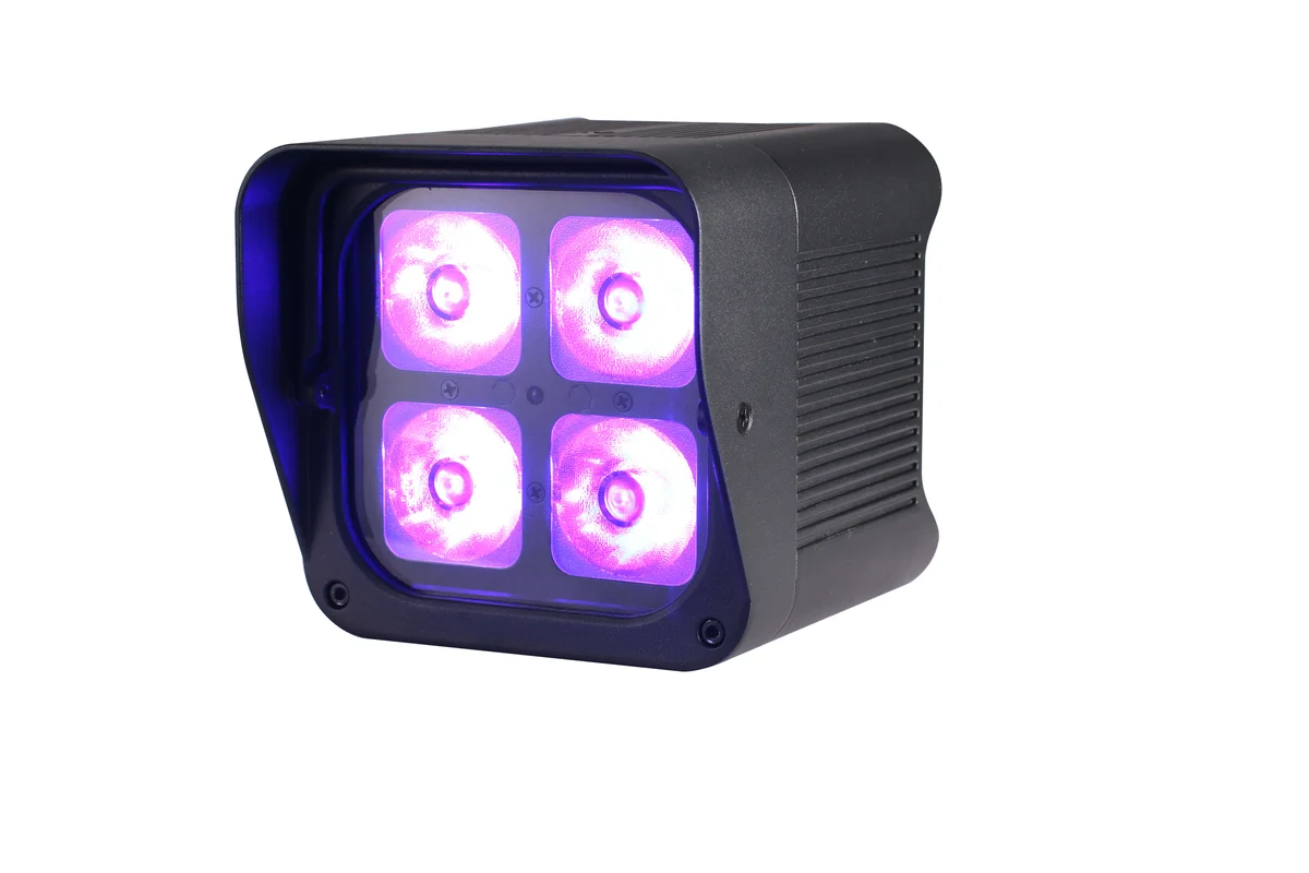 4x20W RGBWA+UV, 8800mAh, 15H single/2H full/6H auto, Wireless DMX, App, IP65