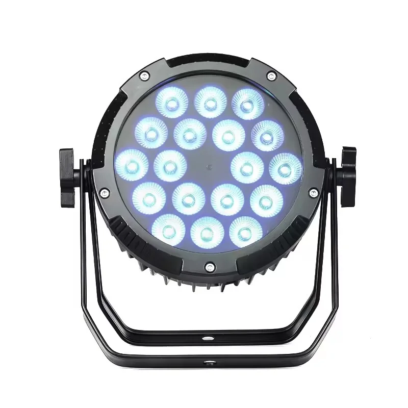Equipe de sources LED 18x12W RGBW, l'ORYXA STORMY SLIM PAR 1812 IP delivre un rendu lumineux puissant et homogene.