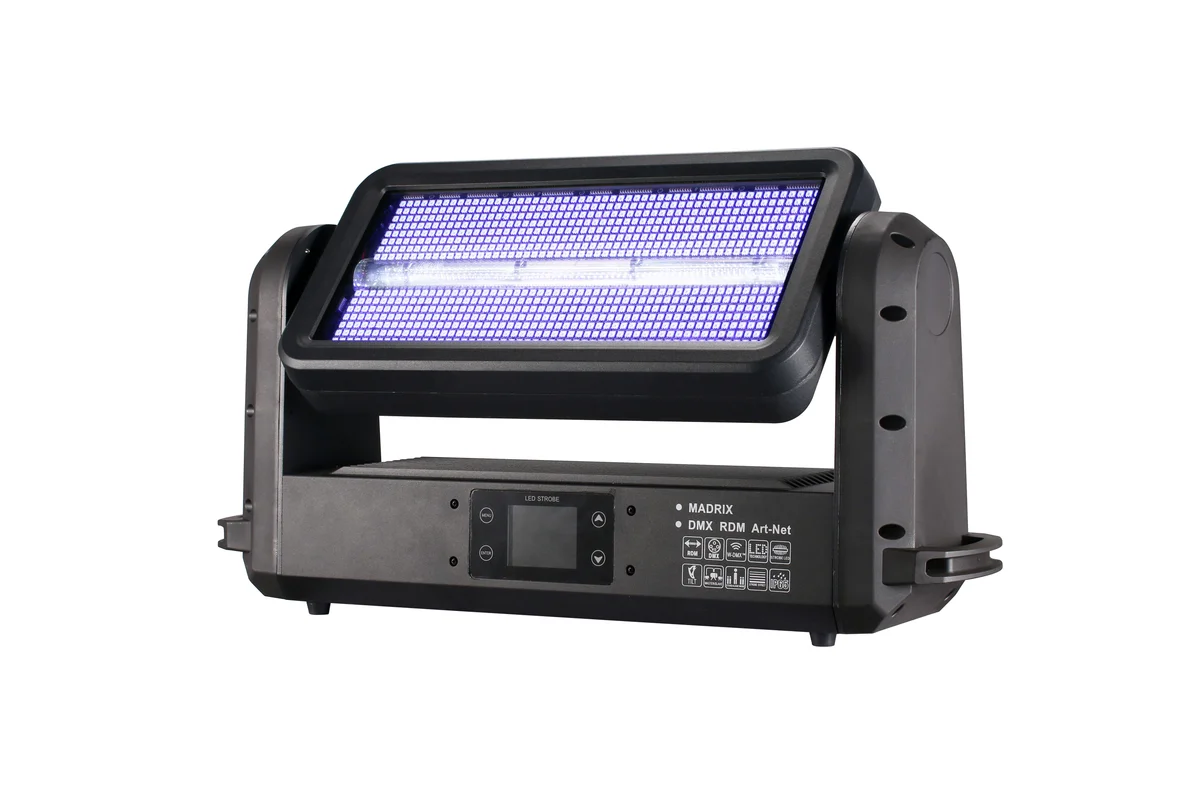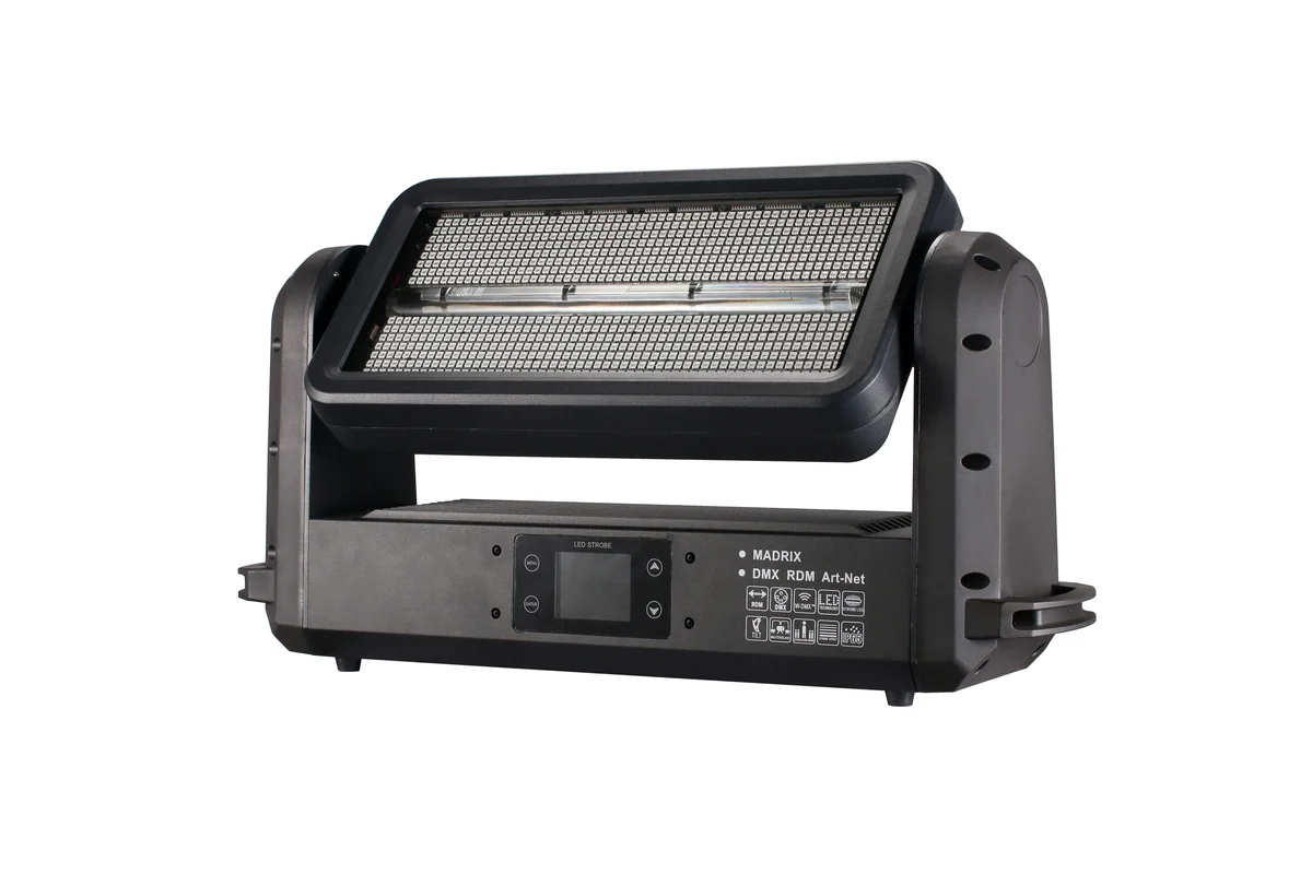 Equipe de sources LED 160x10W RGB LED, l'ORYXA STORMY STROBE M3000 IP delivre un rendu lumineux puissant et homogene.